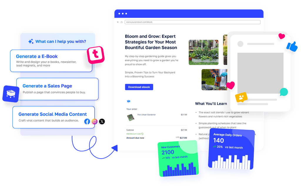 An entire business in minutes, auto-magically✨ tailored to your voice & style.