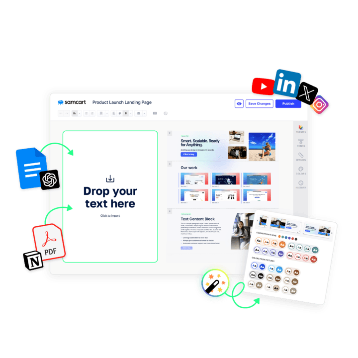 SamCart Magic Wand helps design, and refine in seconds — from smart titles to perfectly matched layouts, images, and colors.